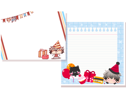 A collection of sweet, silly, and heartfelt messages to make your big day extra special! With 3 templates to choose from made by Kori, and 4 different color of Ryopost made by Sara for all Ryonins to write their messages on.